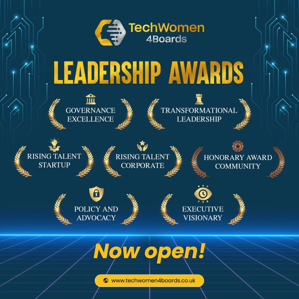 Please note that this award is open for applications until the end of April 2026. Up to five candidates will be considered for the Honorary Awards and will be carefully selected by the TechWomen4Boards Committee. The awards will be presented at our Black Tie Gala Dinner.
